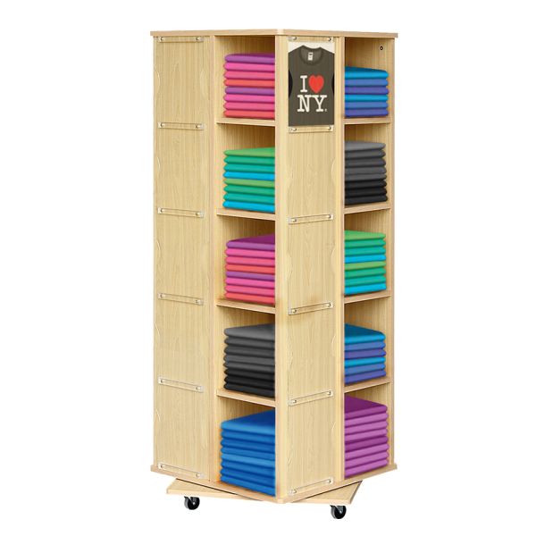 B5-3. 20-BINS REVOLVING T SHIRT DISPLAY W/CASTERS ***AVAILABLE IN MAPLE AND BLACK***